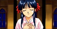 Ogami and Sakura kiss during Sakura's Ending in Sakura Wars.
