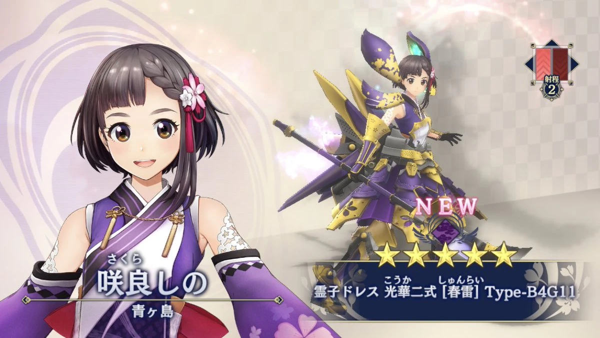 The Kouka Type-1 "Junpu A1A1" (光華一式[純風]Type-A1A1) is the first Spiricle Dress worn by Shino as the default unit. It was a transmogrification of an Koubu Spiricle Armor relic owned by Nadeshiko Sakura, which became the prototype for future dresses customised for new troupe members in the game's storyline.